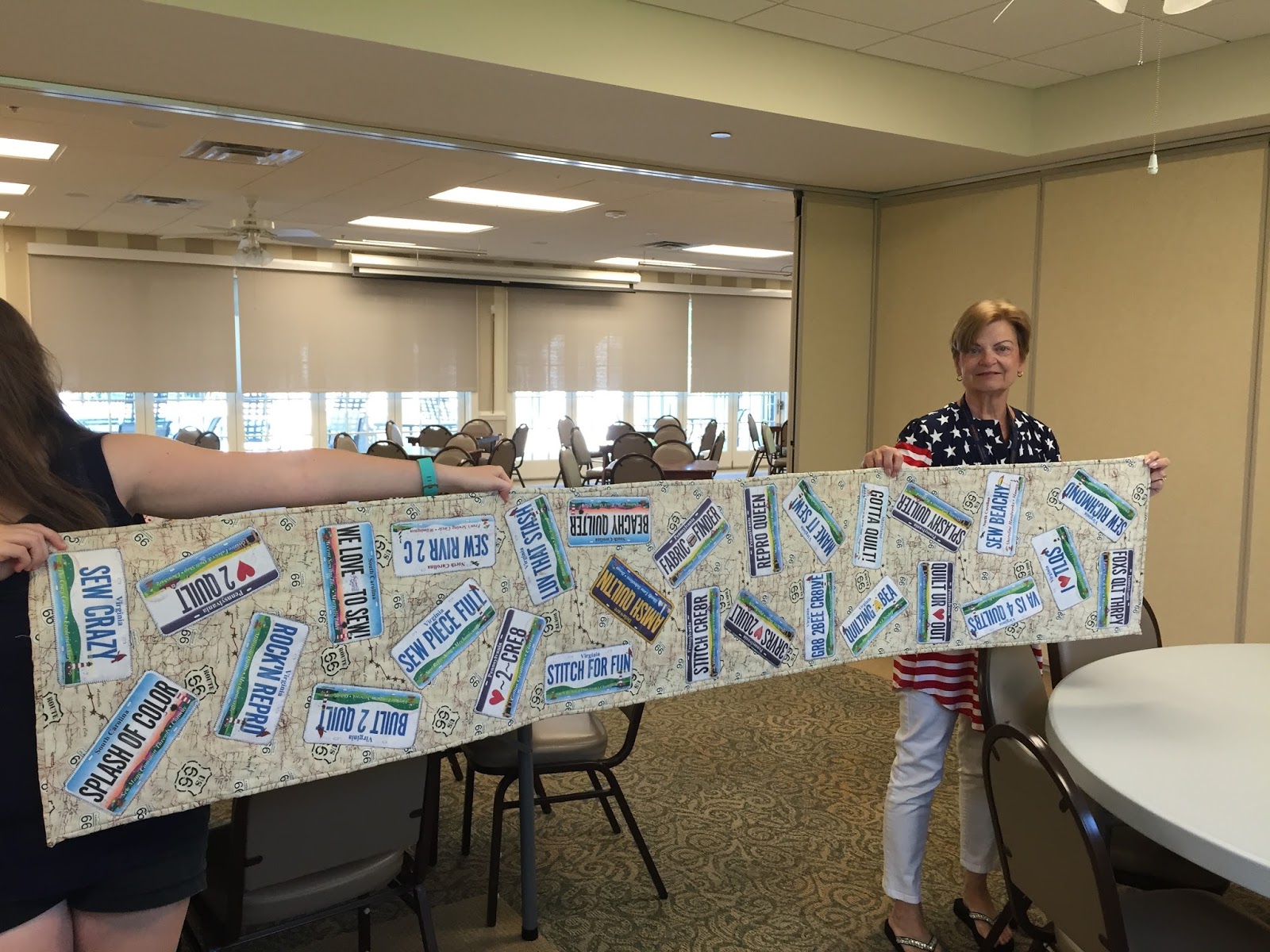 Here is Sharon's runner made with last year's Row by Row license plates.